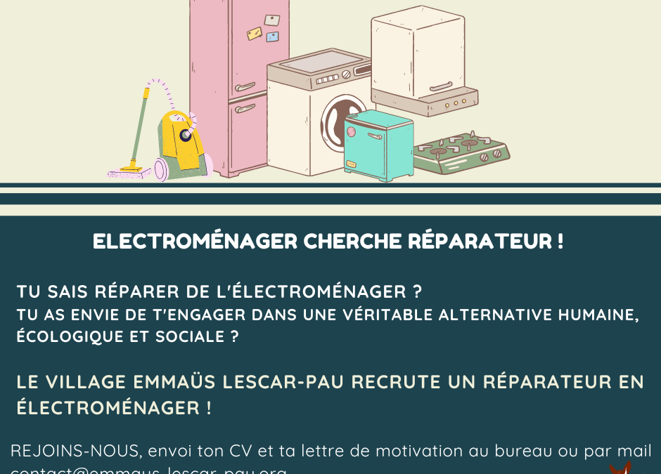 LE VILLAGE EMMAÜS LESCAR-PAU RECRUTE UN REPARATEUR EN ELECTROMENAGER !
